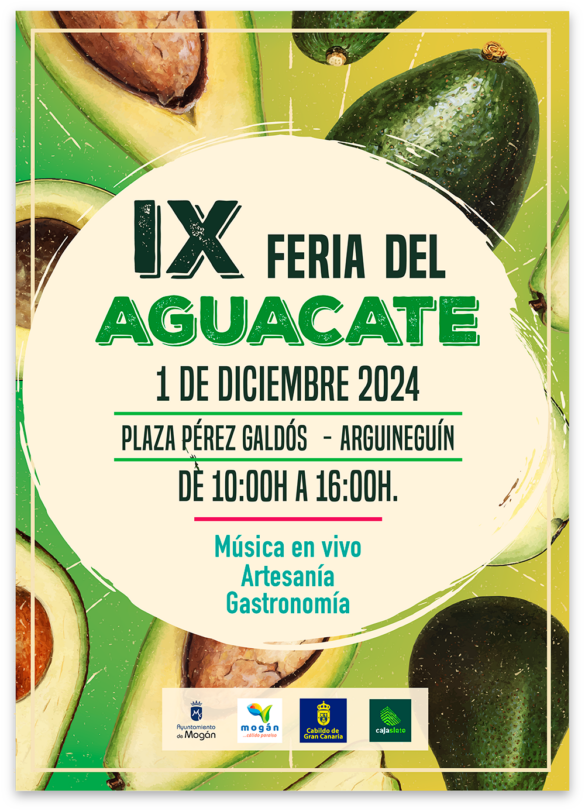 Arguineguín se prepara ya para la novena edición de la Feria del Aguacate de Mogán, que tendrá lugar en la plaza Pérez Galdós de la localidad este domingo 1 de diciembre de 10:00 a 16:00 horas. Los agricultores y agricultoras del municipio pondrán a la venta más de 4.500 kilos de este producto, conocido por su excelente calidad como el ‘oro verde’ moganero. Las personas que se acerquen a disfrutar de la jornada encontrarán otras variedades de frutas cultivadas en Mogán como mangos y naranjas, pero también productos elaborados, artesanía y zona gastronómica con música en directo. Por segundo año consecutivo se ha invitado a participar con un puesto a otro municipio. En esta ocasión, La Aldea de San Nicolás de Tolentino, que ofrecerá sus reconocidos tomates y productos elaborados a partir de estos.