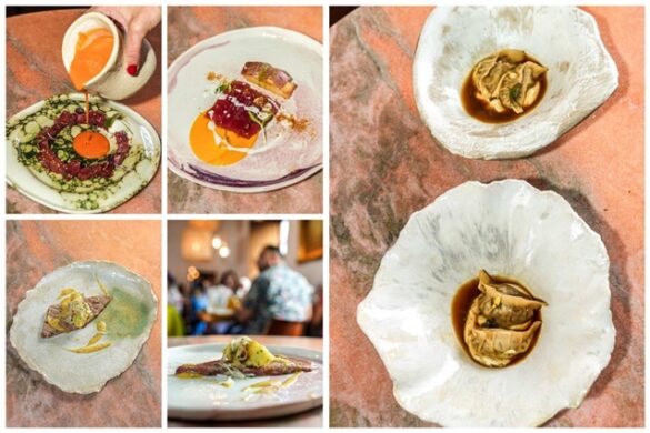 El menú-degustación, a un precio de 70 euros (sin maridaje), incluye platos exclusivos como el sashimi de ventresca, arroz crujiente y mahonesa de chipotle; los dados picantes de atún, salmorejo de tomates de Tinajo y helado de queso de cabra; el mormo & morrillo en mojo hervido, coliflor y mimos de tomate; el bocado de parpatana, consomé tostado y puré de apio; el solomillo a la brasa, bearnesa de mar y papá asada; y la mousse de maracuyá, piña asada y chocolate.