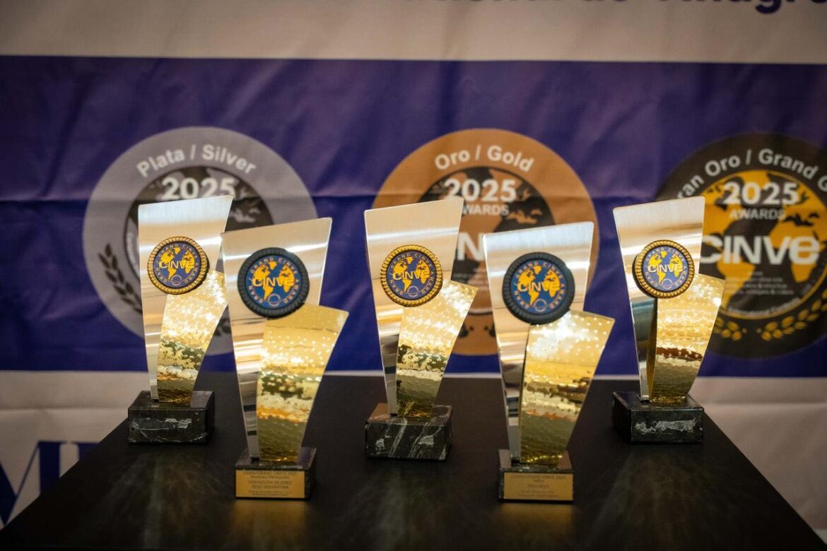 Vinos y otras elaboraciones agroalimentarias de Canarias cosecharon 41 medallas en la entrega de premios de la 21ª edición del Certamen Internacional CINVE, celebrada el pasado viernes en el Hotel Intercontinental de Madrid, con especial protagonismo para la elaboración Alejandro Gallo Syrah 2022, de Gallo y Quíquere Wines Tenerife SL, que recibió el GRAN CINVE 2025 en la categoría de vinos tranquilos. Entre las producciones canarias reconocidas destacaron los vinos, con 36 medallas, seguidos por dos bebidas espirituosas, un vermut, un aceite de oliva virgen extra y una elaboración de plátano.